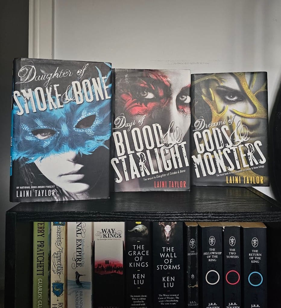 - Daughter of Smoke and Bone trilogy by Laini Taylor.