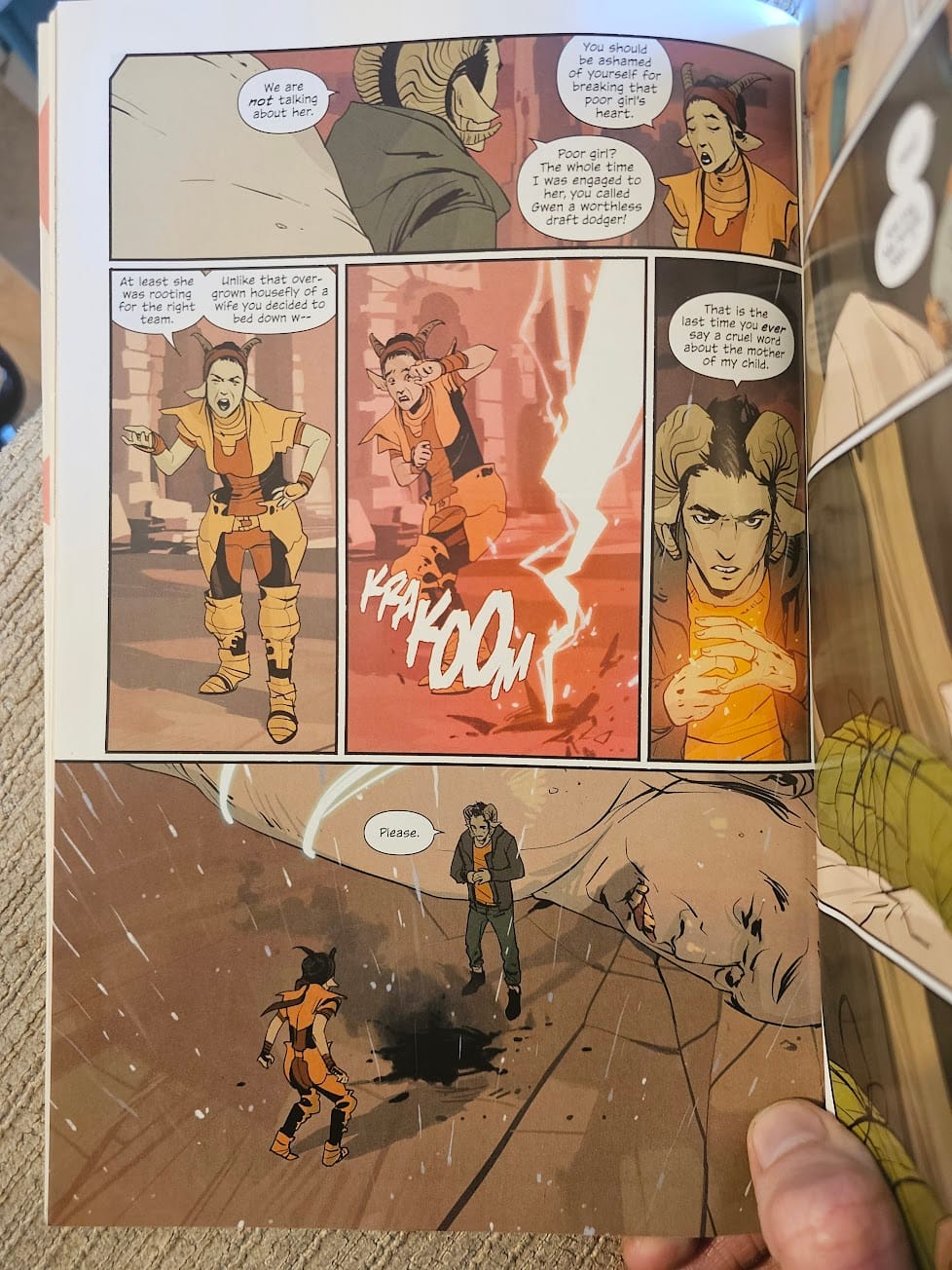 Honestly, Marko's mum sucks... She's so mean to Alana and doesn't even know her. I wish she ended up dead, instead of Marko's father. There, I said it. I guess, his mum is an example of how much hatred there is between the Horns and the Wings. I feel like I still don't fully understand the war... Although, it does seem to have been going on for just about forever, so I guess there's no wonder they all got their panties in a twist about these runaway lovers.