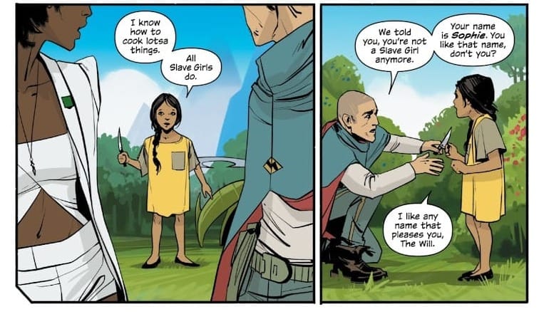 The Will and Gwendolyn’s story expands a lot in this one. Basically, Gwendoyln is still tracking down her ex, Marko and begrudgingly Will agrees to help. They are accompanied by Sophie. I am so glad they finally gave this rescued child a name and have refrained from simply calling her Slave Girl. I honestly don't know how they kept calling her that the whole time.