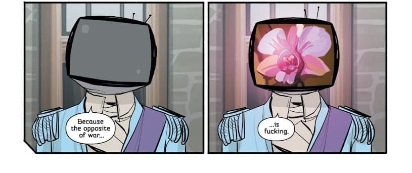 If you read my review for Volume 2, you will know that Marko’s mother, Klara, made a less than desirable impression on me… That hasn’t changed… I want her gone. I will say that she became much more ‘human’ in this book (which I know is ridiculous to say given her horns) with her opening up to Heist, as him being a potential love interest. Personally, I think Heist simply provided Klara with a necessary comfort during her time of grief and I don’t think she reciprocated his feelings at all (despite Izabel’s teasing). But whatever, he's dead now so what does it matter.